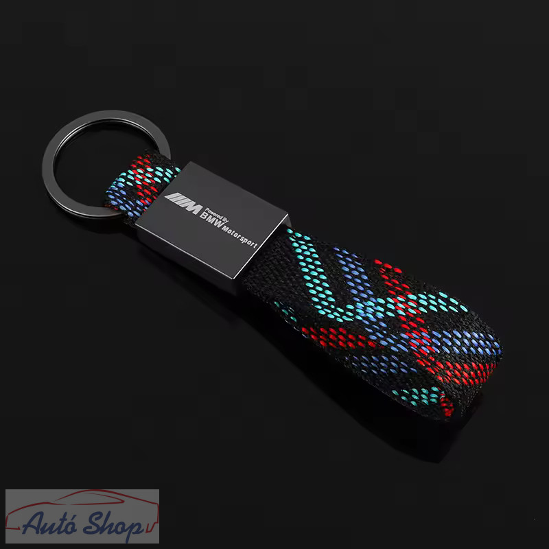 Fehér BMW Motorsport felirattal az alapon és gravírozva a kulcstartón.